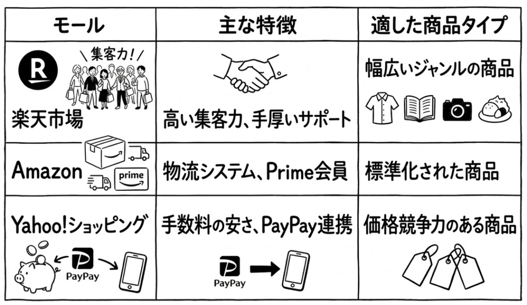 複数のモールに出店する場合の注意点はありますか?